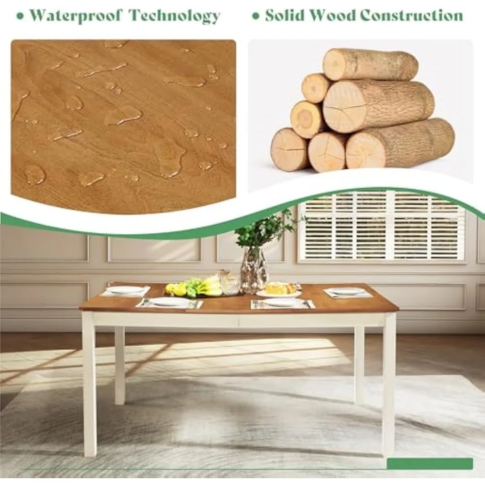 【Dining Table Set for 6】Rustic rectangular dining table paired with 6 upholstered chairs, a generous table size of 60"L x 36"W, ensures ample space for family gatherings and dinner parties and enjoying your dinner time 【Versatile Style】With its attractive wood grain finish, this classic dining set seamlessly integrates into various home decor, from farmhouse to traditional, from house scenes to commercial spaces, customize dining space effortlessly 【Ergonomic Design】Table and chair heights are expertly tested for optimal comfort. Curved high backrest provides excellent lumbar support, while breathable linen fabric cushion ensures a comfortable seating experience 【Sturdy & Long-Lasting】Crafted from thickened tabletop board and solid wood surface, this dining set offers exceptional support and durability while remaining easy to clean and maintain 【Easy Assembly】Quick setup by two adults, complete with installation manual and all necessary hardware included. Please ensure the dining table set size fits your space for optimal use