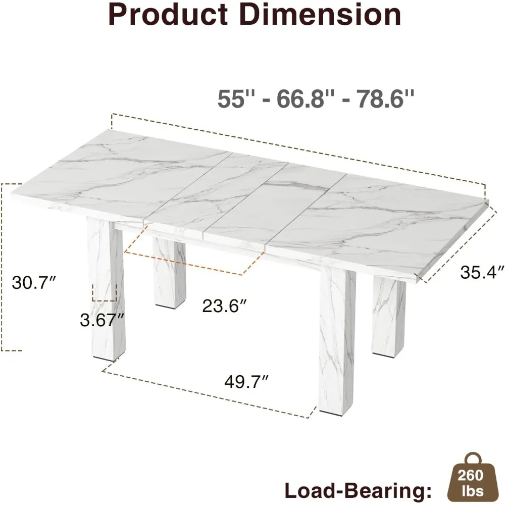 - EXTENDABLE TABLE: Designed with space-saving features in mind, this extendable dining table comes with an extendable tabletop that can be lengthened from 55 inches to 78.6 inches with a simple adjustment, making it ideal for family gatherings
